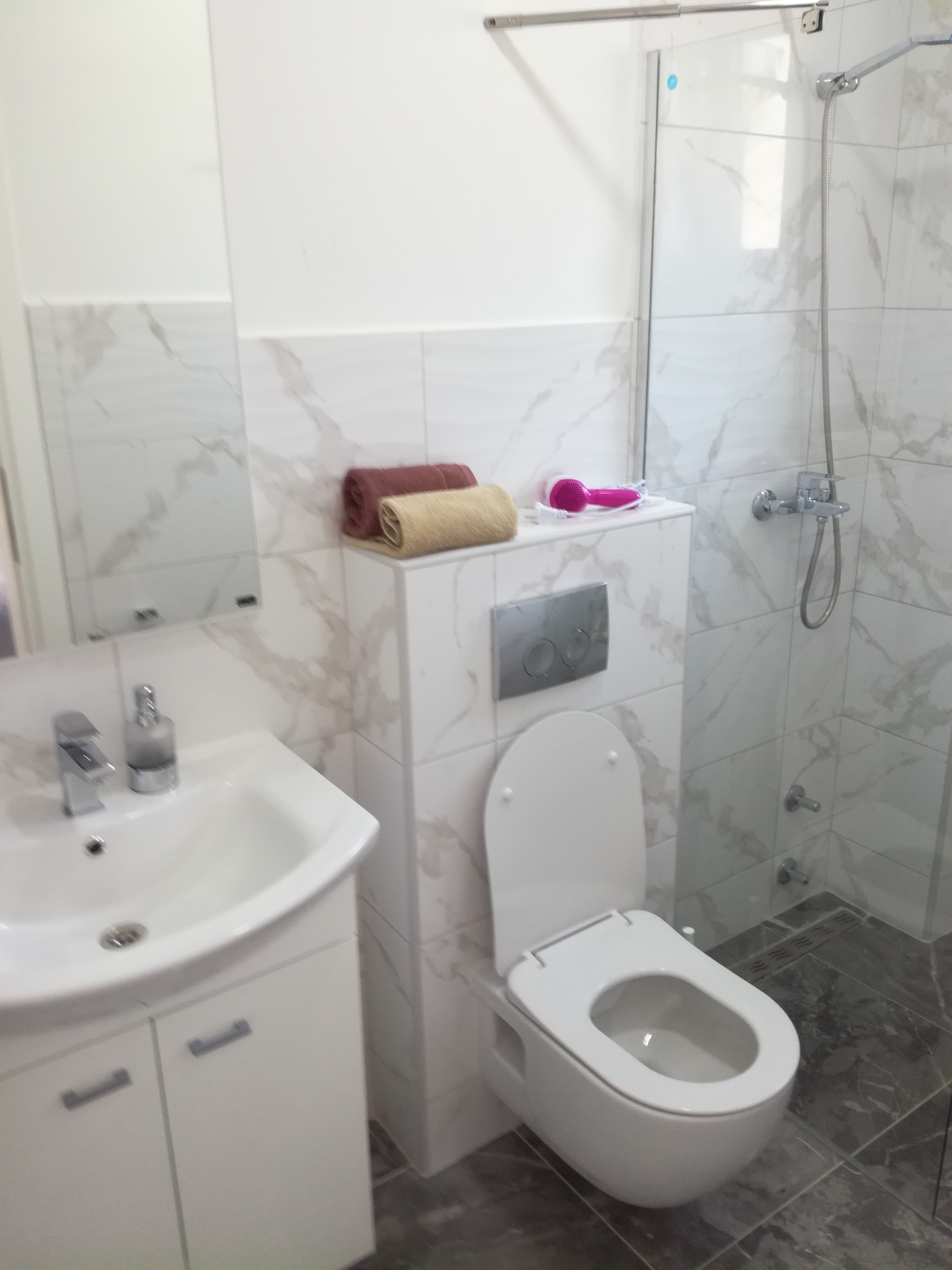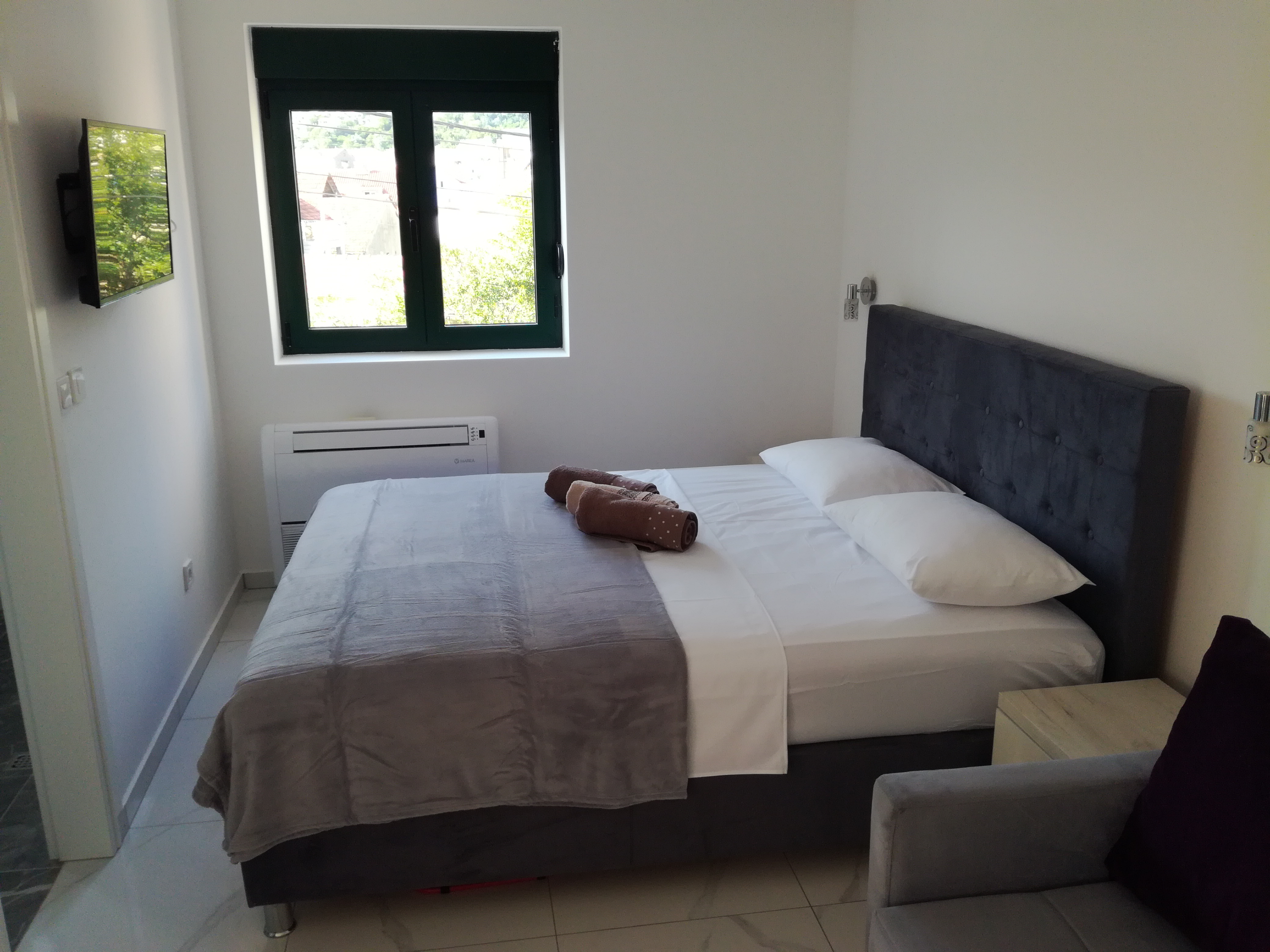 Studio se nalazi na prvom spratu i površina mu je 25 m2. Kapacitet 3 osobe. Terasni sto i dvije stolice se nalaze pored vrata studia na zajedničkom stepeništu.